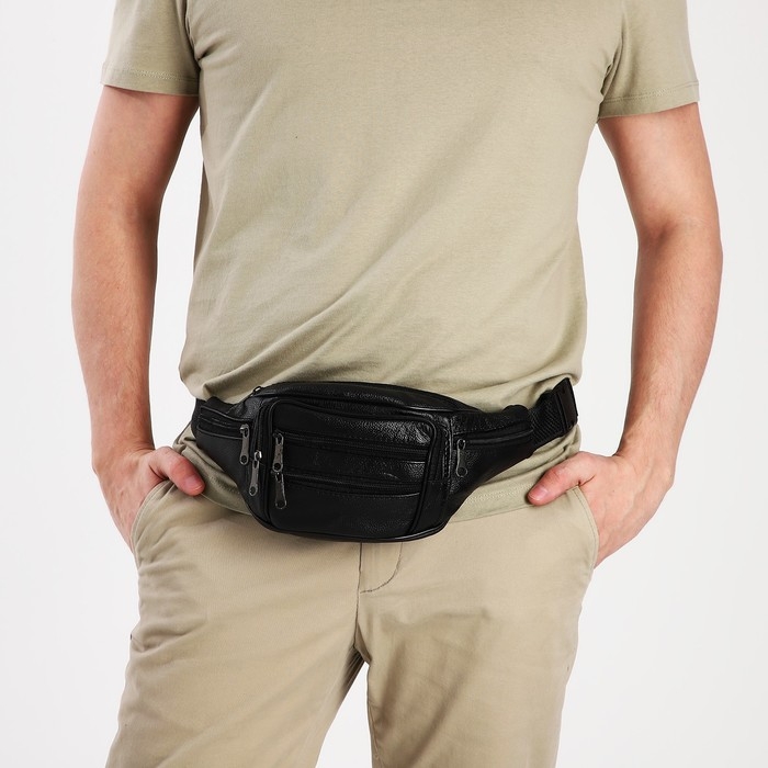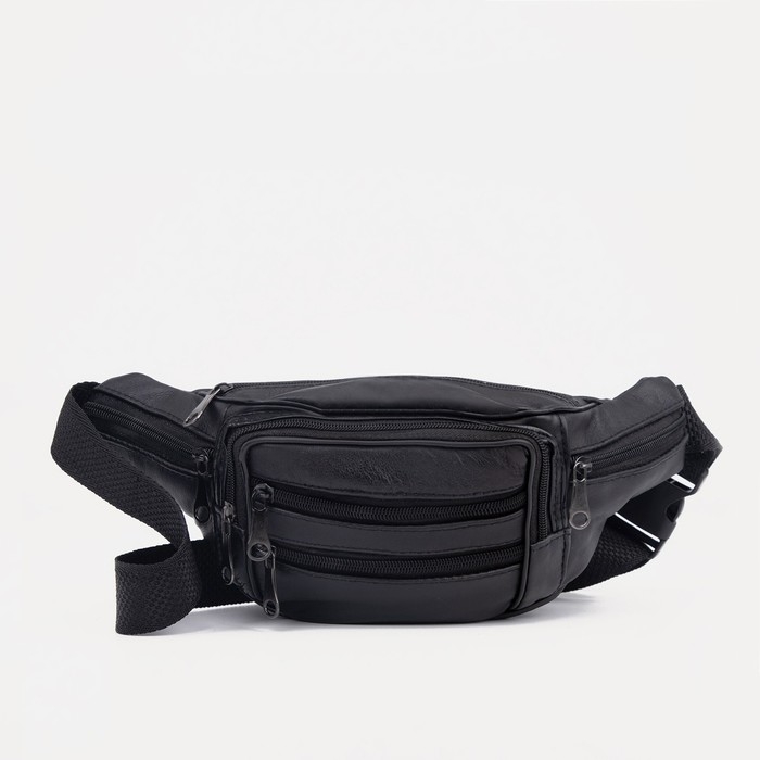 Сумка поясная на молнии, 3 наружных кармана, цвет чёрный