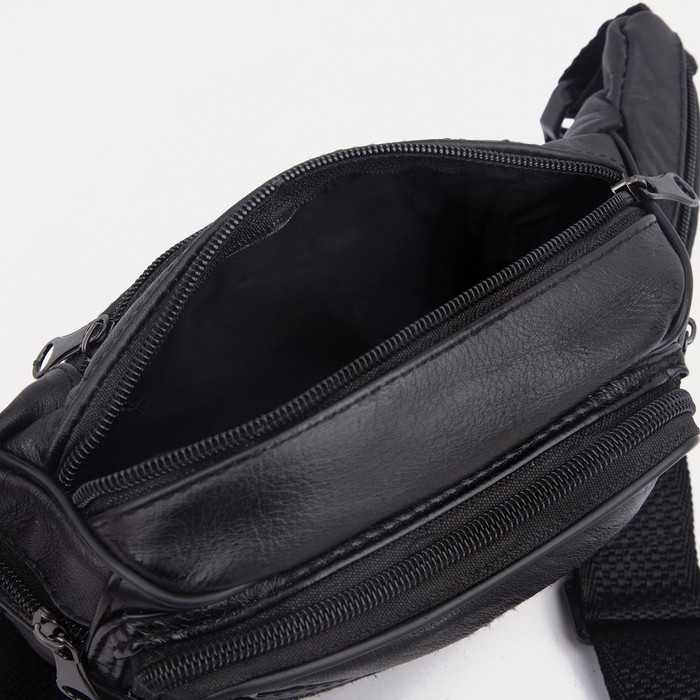 Поясная сумка на молнии, 3 наружных кармана, зацеп на бедро, цвет чёрный