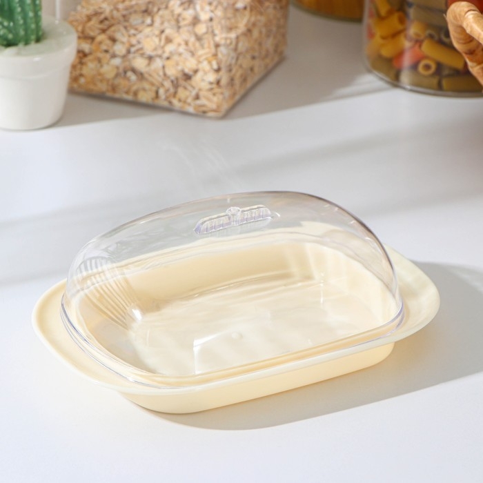 Маслёнка, пластиковая, 18×12×7 см, цвет слоновая кость