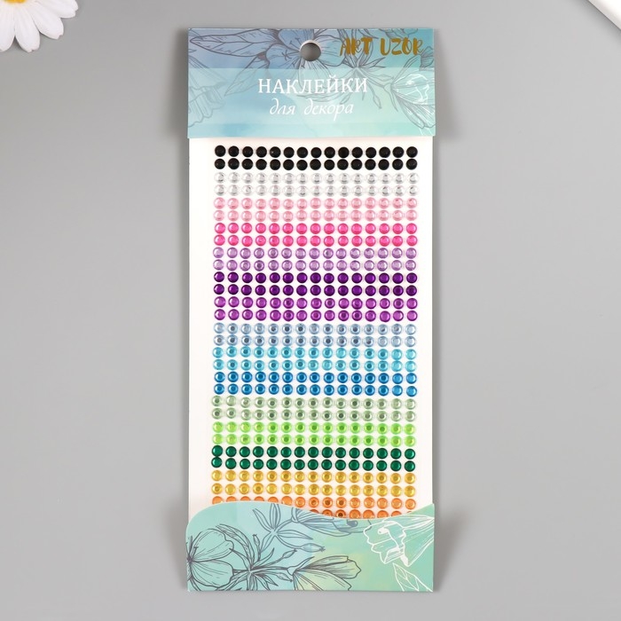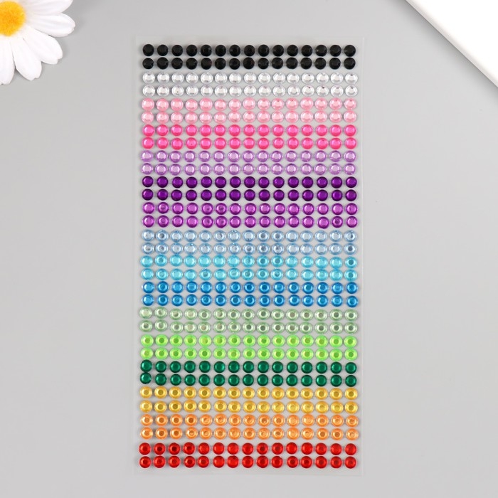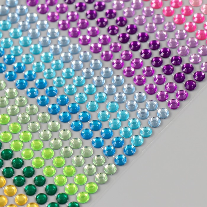 Наклейка пластик стразы "Радуга 16 цветов" d=0,6 см 24.5х11 см