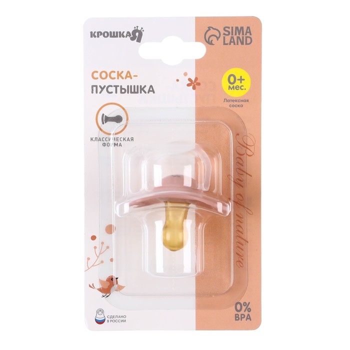 Соска - пустышка латексная классическая «Птичка», от 0 мес., цвет розовый