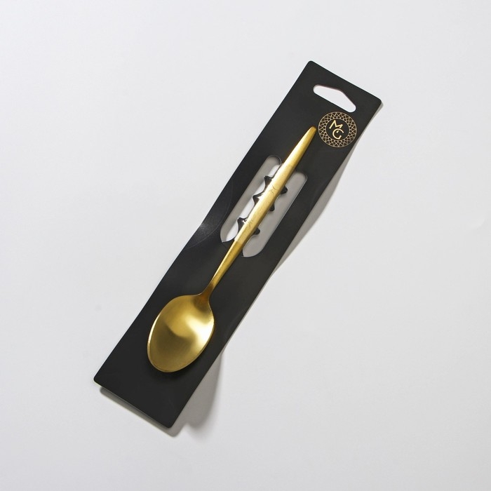 Ложка чайная из нержавеющей стали Magistro «Блинк», 15,5×2,8 см, белая ручка, на подвесе, цвет золотой