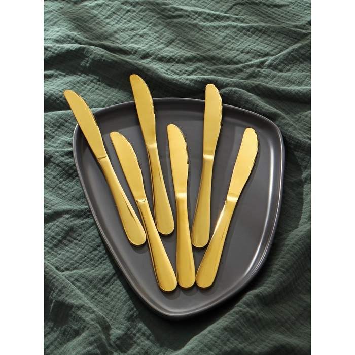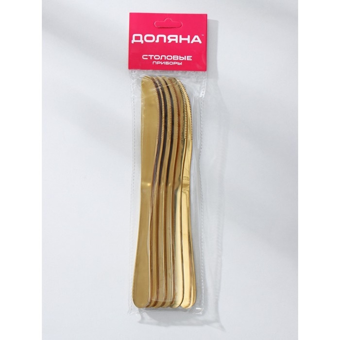 Ножи столовые из нержавеющей стали Доляна «Голд», длина 22 см, 6 шт, цвет золотой