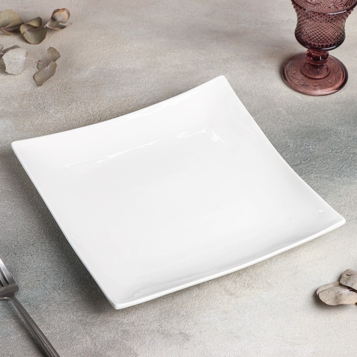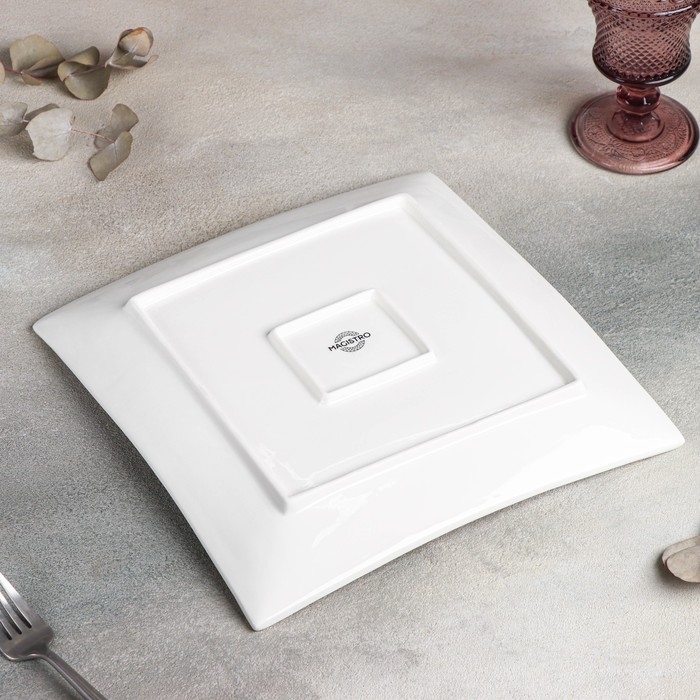 Блюдо фарфоровое для подачи Magistro «Квадрат Бланш», d=26 см, цвет белый
