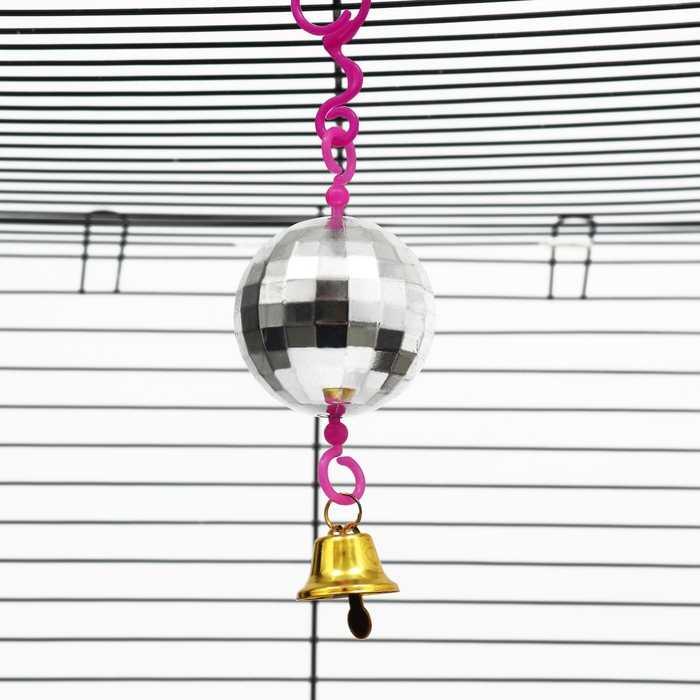 Знакомьтесь, попугаи! Представляем вам невероятно захватывающую игрушку - диско-шар с колокольчиком! Эта маленькая, но настоящая "бомба" подарит вашим попугаям яркое и веселое времяпрепровождение. Внешний вид диско-шара сразу привлечет внимание вашего пернатого друга - он сияет и переливается всеми цветами радуги. Каждый уголок комнаты станет настоящим танцполом для вашего попугая! Однако, самая настоящая изюминка игрушки - колокольчик. Когда птичка прикасается к игрушке или делает шаги рядом с ней, колокольчик издает приятное звонкое звучание. Это добавляет дополнительную стимуляцию и веселье, ведь ваш попугай будет наслаждаться мелодичным звонком, который он сам будет создавать во время игры. Диско-шар с колокольчиком был специально разработан с учетом потребностей попугаев.Благодаря своей компактности, вы можете легко повесить диско-шар в клетке или в любом другом месте, где ваш попугай проводит большую часть времени. Подарите своему попугаю незабываемые моменты и вечеринки прямо в его клетке! Диско-шар с колокольчиком - это идеальный способ развлечь вашего пернатого друга.