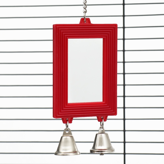 Игрушка для птиц "Отражение" с колокольчиком, 13.5 х 6.8 см, микс цветов