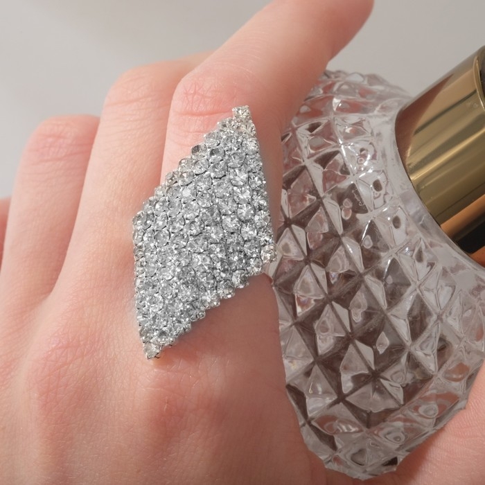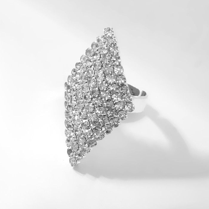 Кольцо «Лёд» ромб, цвет белый в серебре, безразмерное