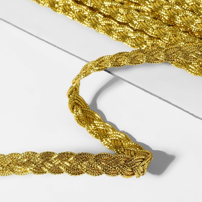 Тесьма декоративная «Косичка», 8 мм, 10 ± 1 м, цвет золотой