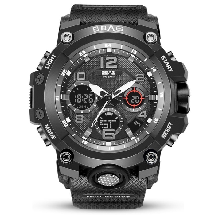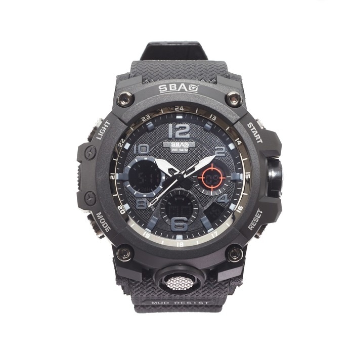 Часы наручные электронные мужские, будильник, календарь, d-5.6 см, l-20.5 см, 3 ATM, черные 972999