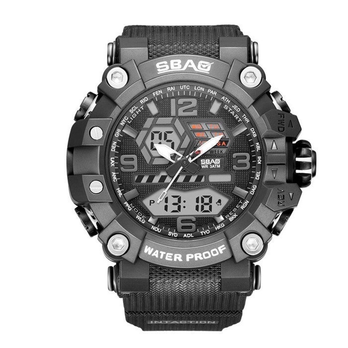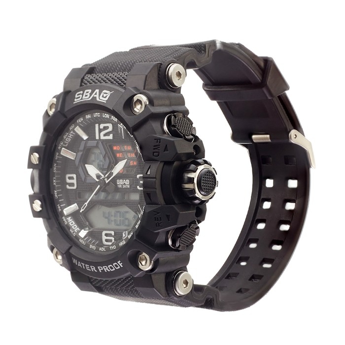 Часы наручные электронные мужские, с будильником, календарем, подсветкой, d-5.8 см, l-21.5 см, 3 ATM