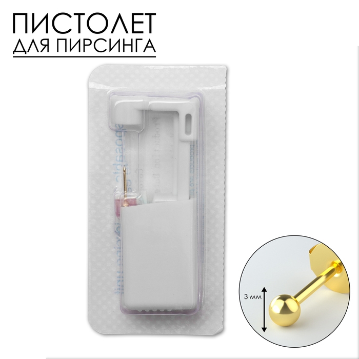 Пистолет одноразовый для пирсинга, серьга в комплекте «Минимал», 3 мм, цвет золото