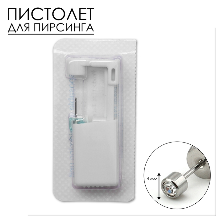 Пистолет одноразовый для пирсинга, серьга в комплекте «Мини», 4 мм, цвет белый в серебре