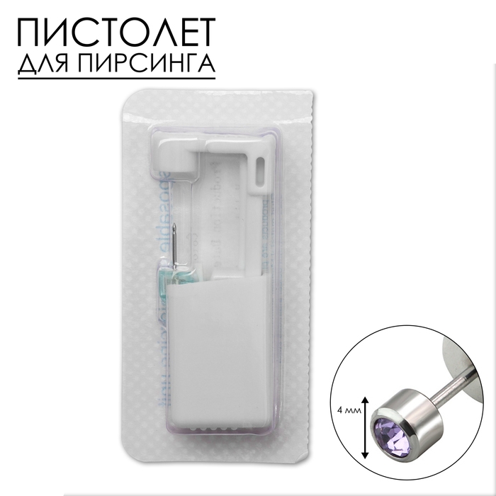 Пистолет одноразовый для пирсинга, серьга в комплекте «Мини», 4 мм, цвет сиреневый в серебре