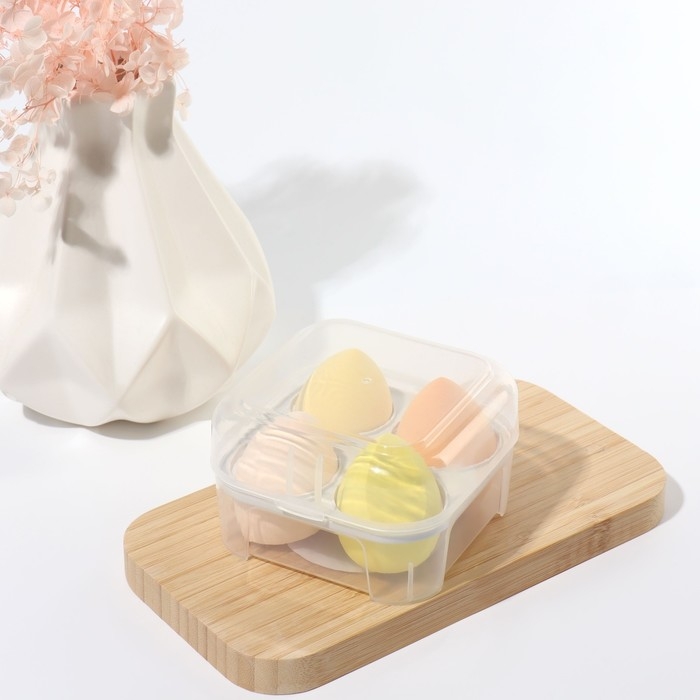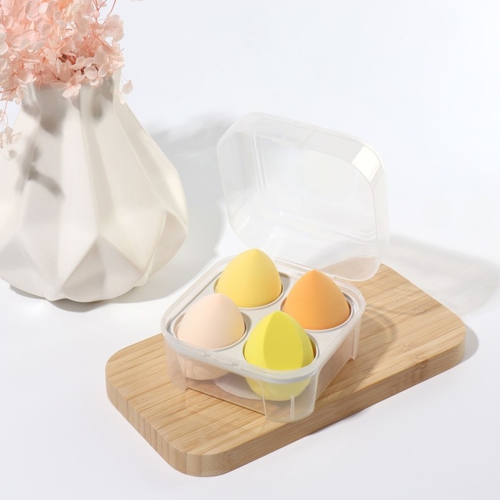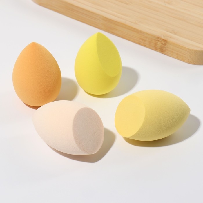 Спонжи для макияжа, набор - 4 шт, увеличиваются при намокании, цвет жёлтый