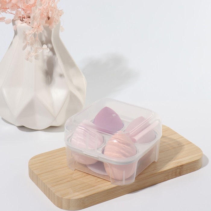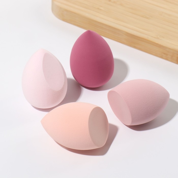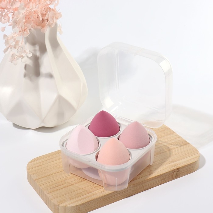 Спонжи для макияжа, набор - 4 шт, увеличиваются при намокании, цвет розовый