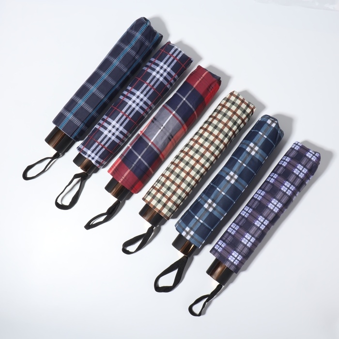 Зонт механический «Клетки», эпонж, 4 сложения, 10 спиц, R = 53/61 см, D = 122 см, цвет МИКС