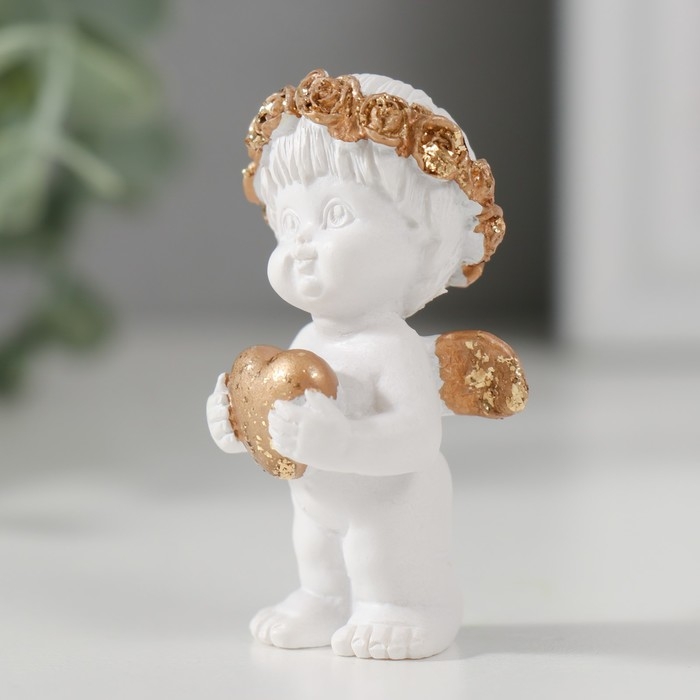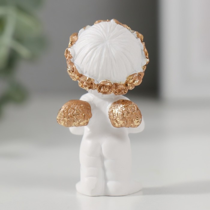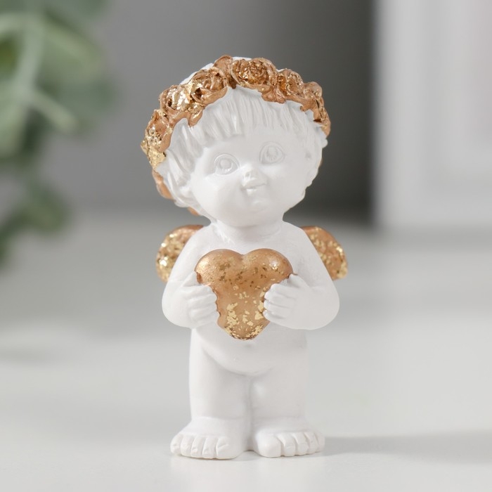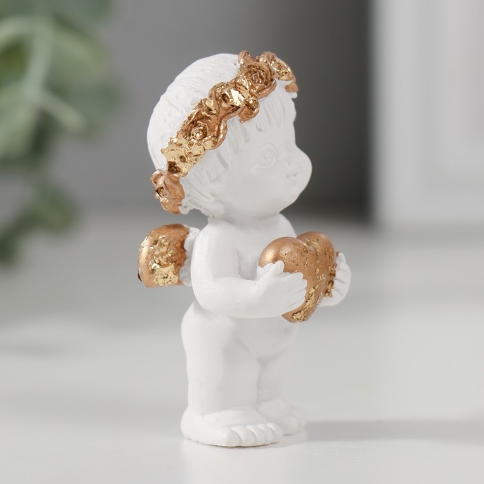 Сувенир полистоун "Ангелочек в венке с сердечком" белый с золотом 5,2х2,5х2,7 см