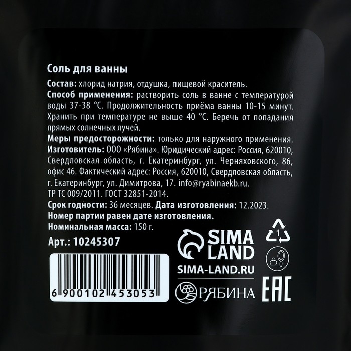 Соль для ванны «С экстрактом роскошной жизни», 150 г, аромат вишни, BEAUTY FOX