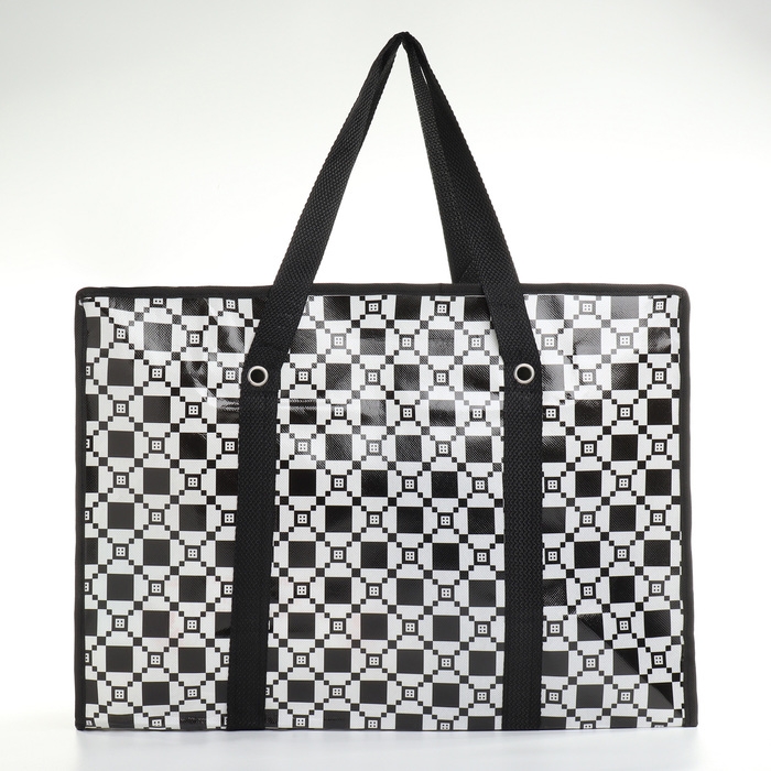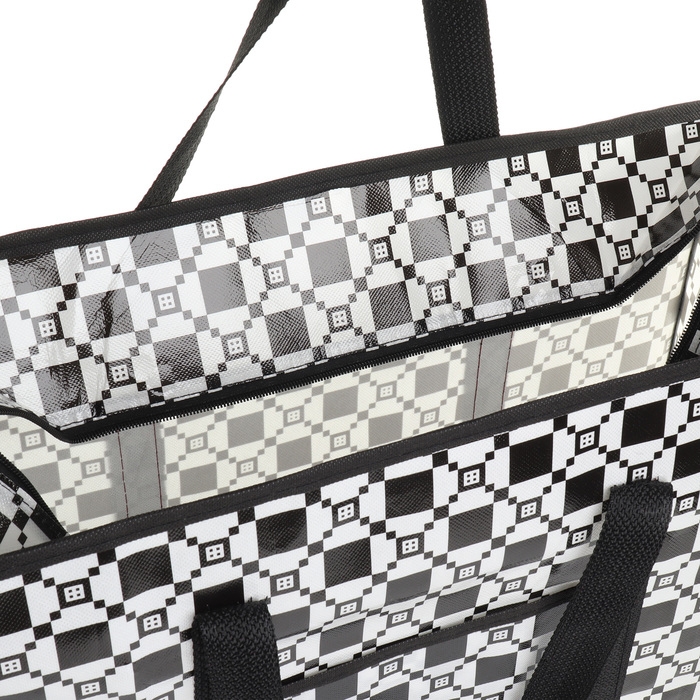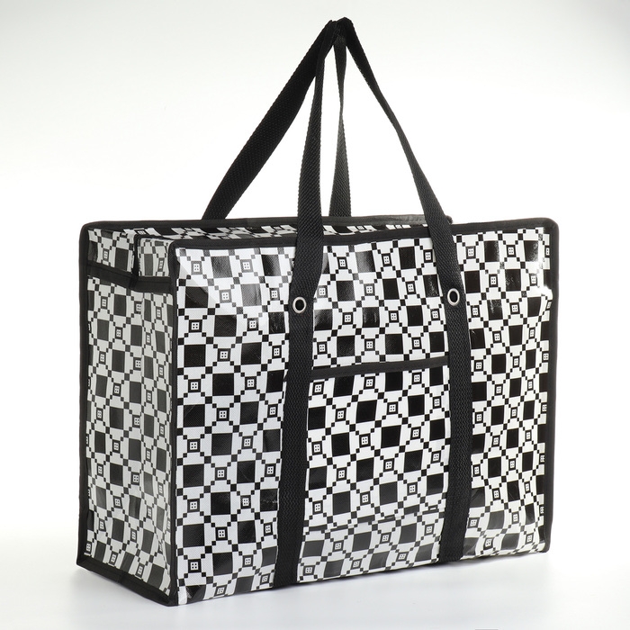 Сумка хозяйственная на молнии, цвет чёрный/белый