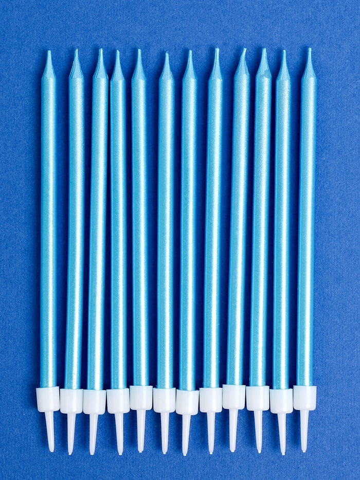 Свечи для торта "Ройс", 12 шт, голубой металлик