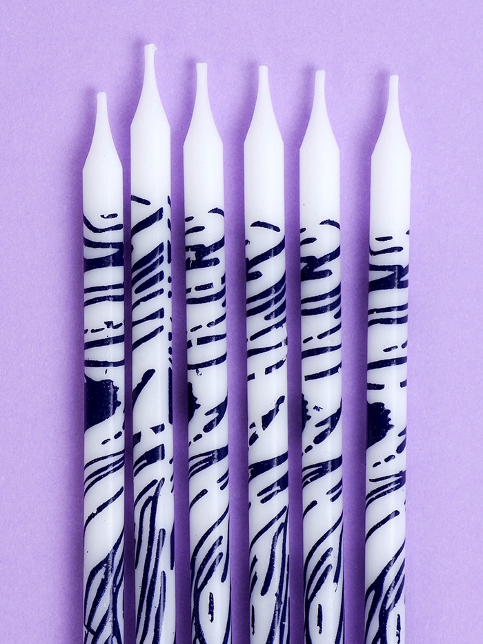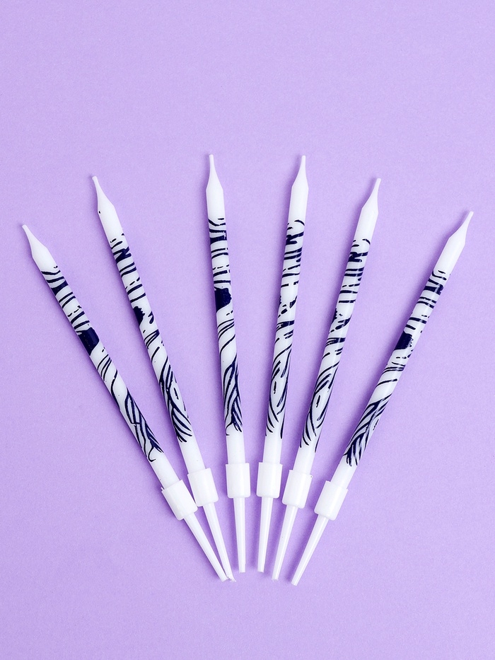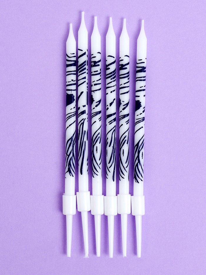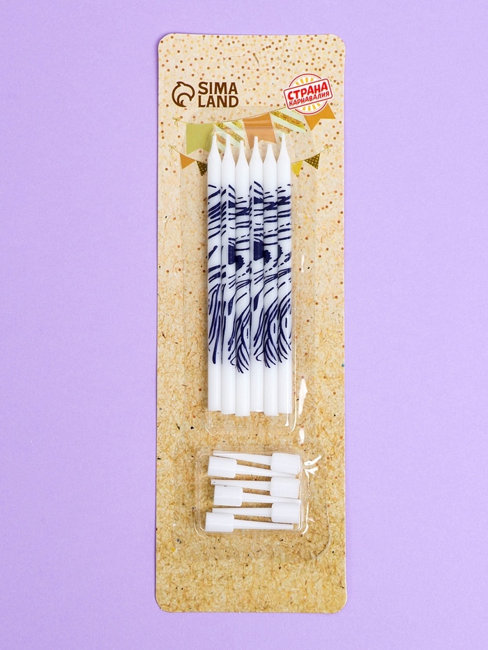 Свечи для торта "Волнистые линии", 6 шт, белый с фиолетовым