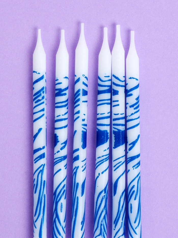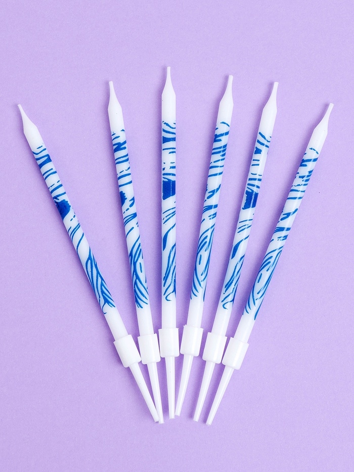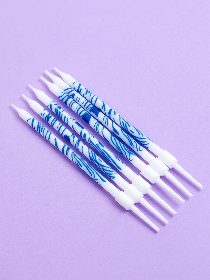 Свечи для торта "Волнистые линии", 6 шт, белый с синим