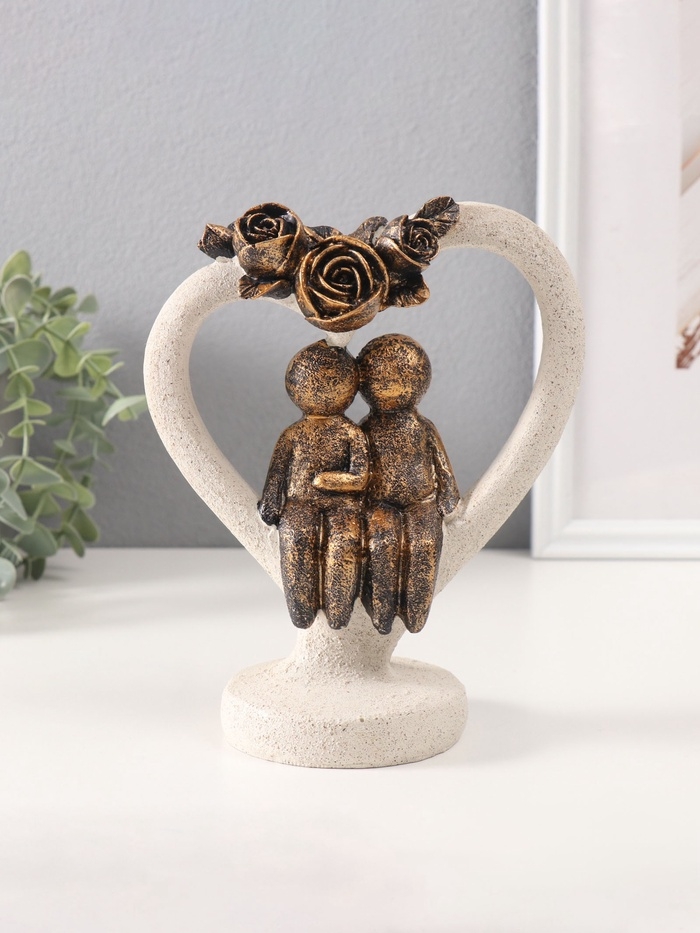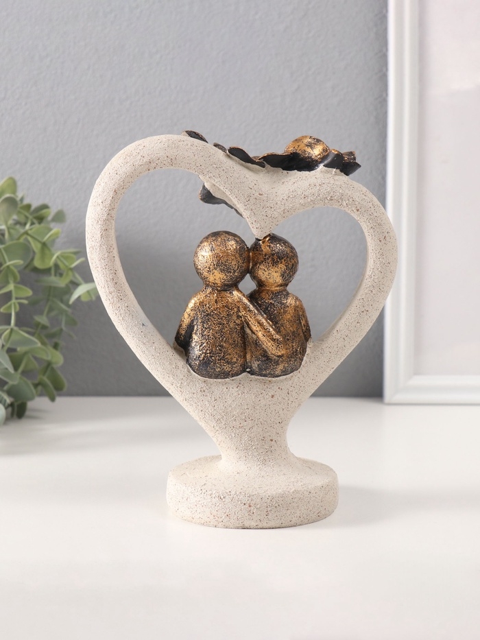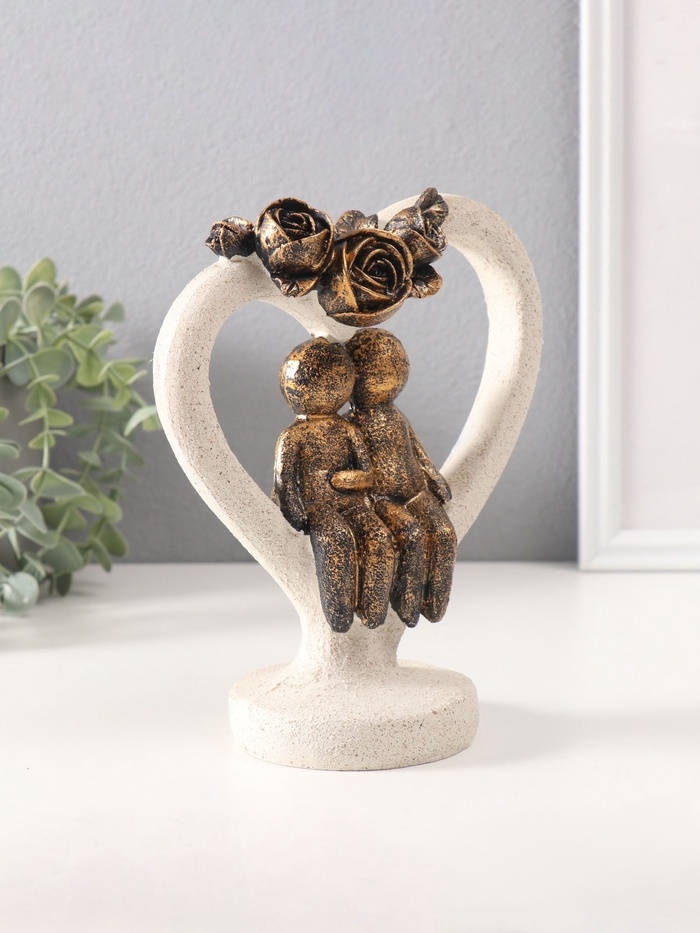 Сувенир полистоун "Влюблённые человечки в каменном сердце с розами" под бронзу 8,8х15,7х20см 10686