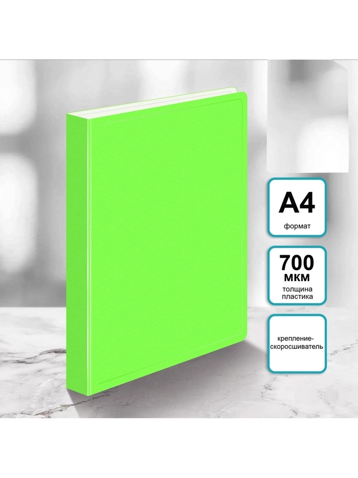 Папка с пружинным скоросшивателем А4, 700 мкм, 27 мм, Calligrata Double Neon, внутренний карман, до 180 листов, салатовый неон