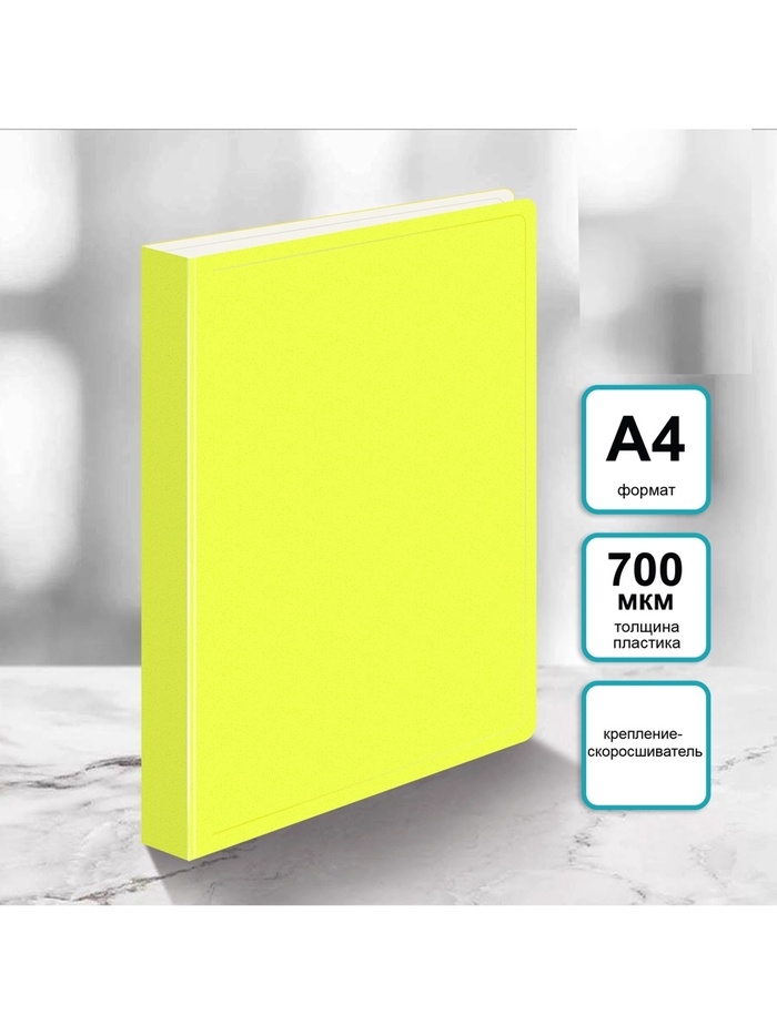 Папка с пружинным скоросшивателем А4, 700 мкм, 27 мм, Calligrata Double Neon, внутренний карман, до 180 листов, желтый неон