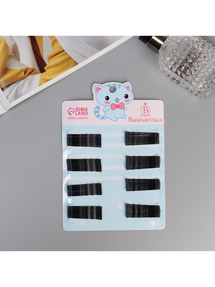 Невидимка для волос "Глория" (набор 80 шт) зайчонок, 4,5 см, чёрный