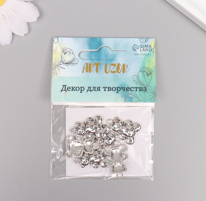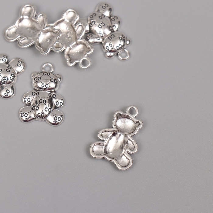 Декор для творчества металл "Медвежонок" серебро набор 6 шт 1,4х2 см
