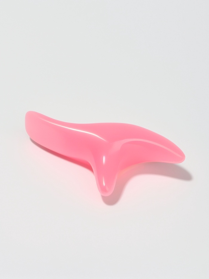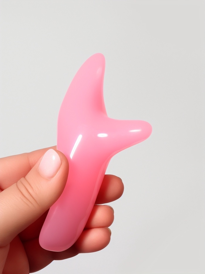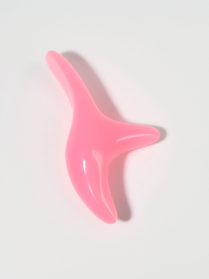 Массажер д/лица смола Гуаша Бумеранг 12*6*3,5см розовый пакет QF