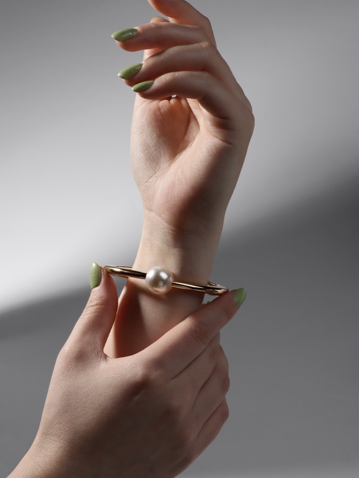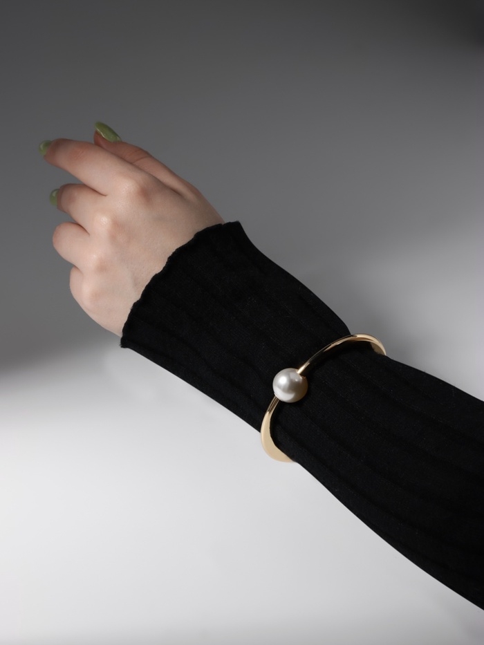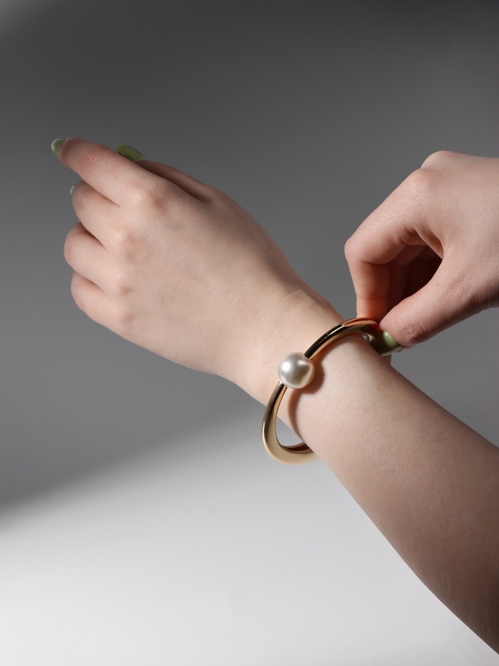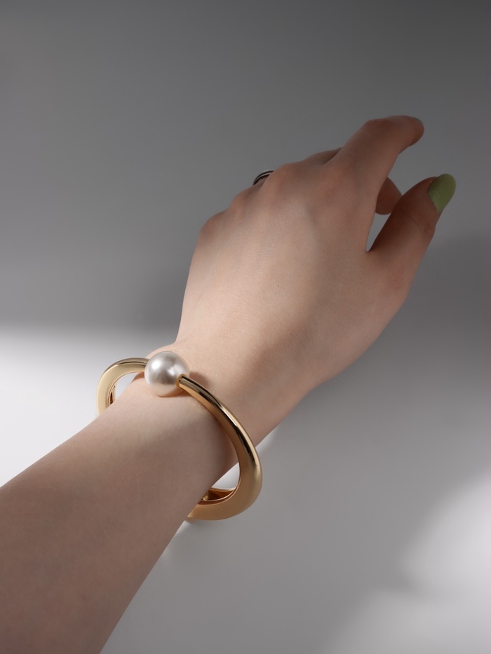 Браслет металл «Жемчужный» одна бусина, цвет золото