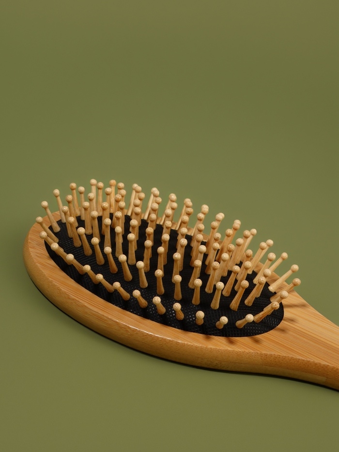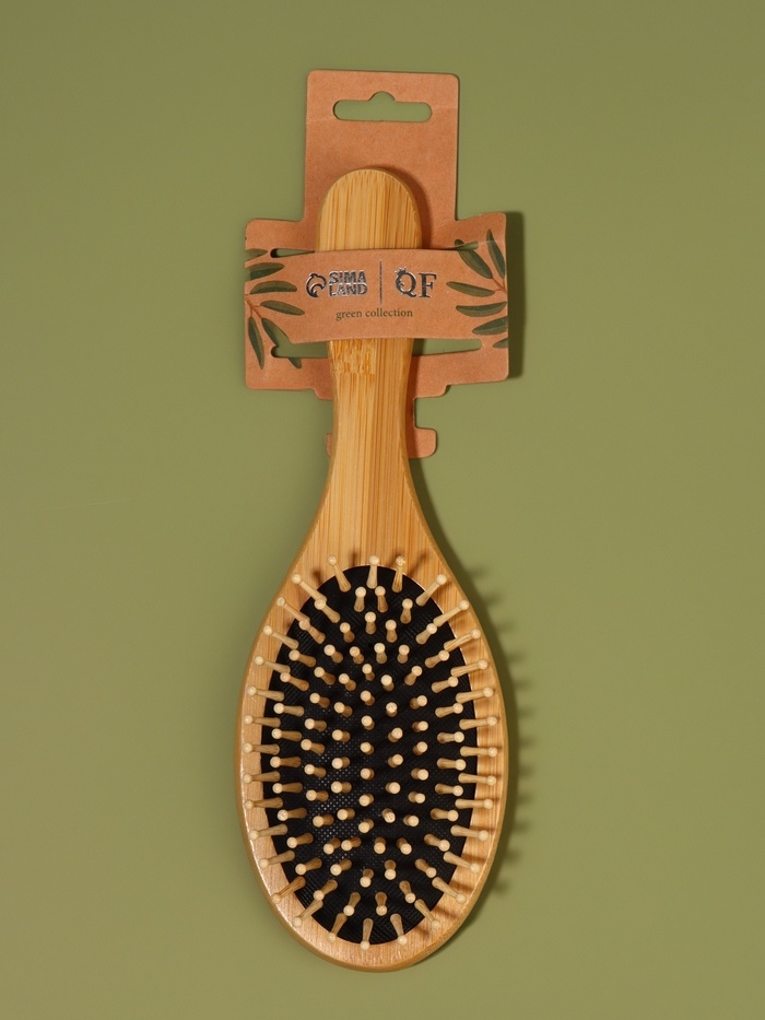Расчёска массажная BAMBOO 24*8см бамбук/резина черн подвес/пакет QF