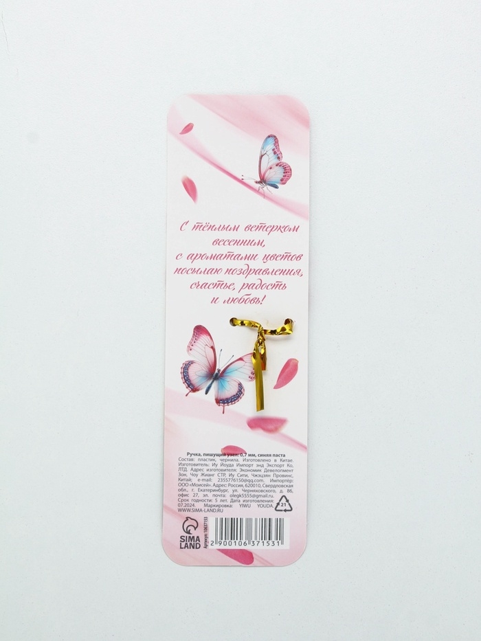 Ручка шариковая синяя паста, пластиковый корпус, автоматическая «С 8 марта, самая лучшая» 0,7 мм