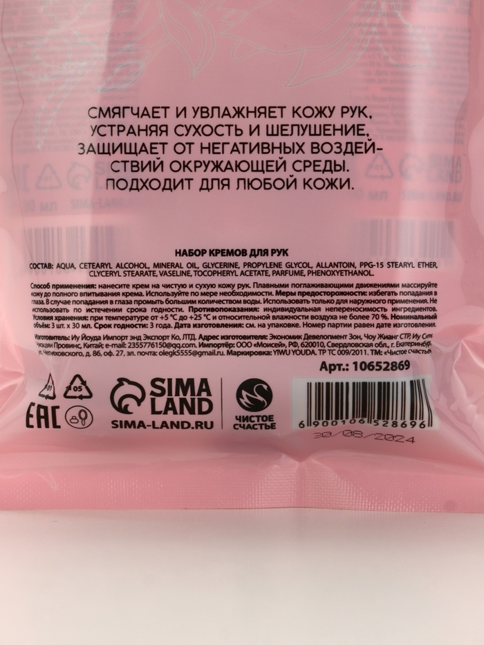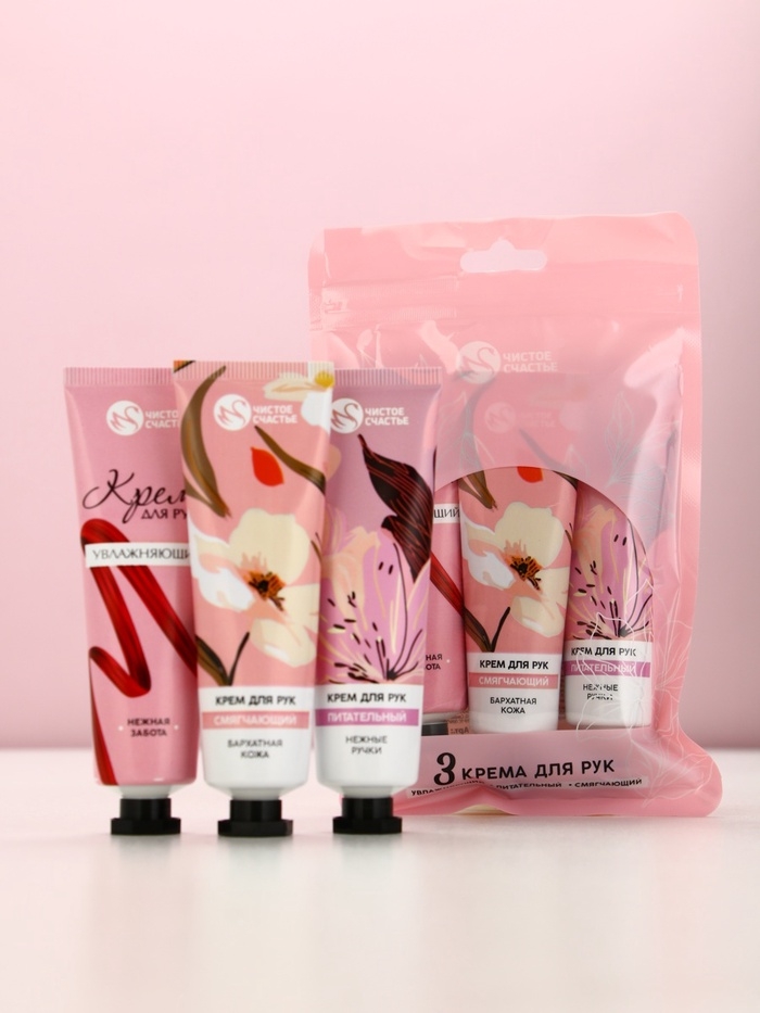 Набор три крема для рук в пакете, увлажнение,питание и смягчение