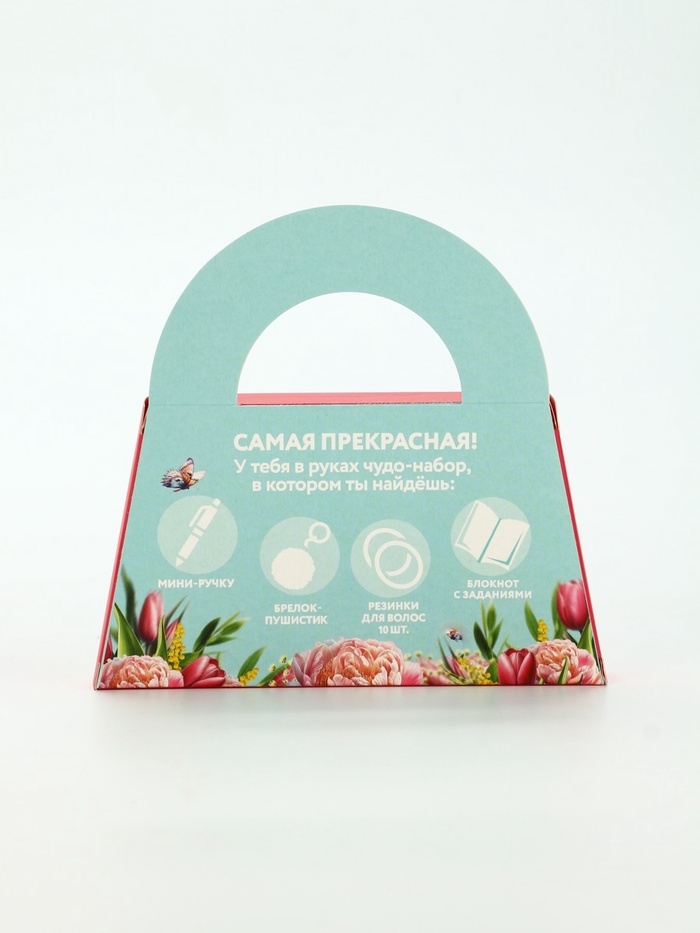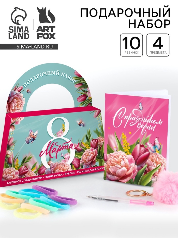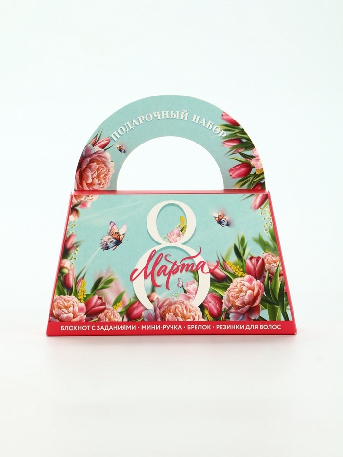 Подарочный набор в сумке: блокнот, резиночки, брелок, ручка "8 марта"