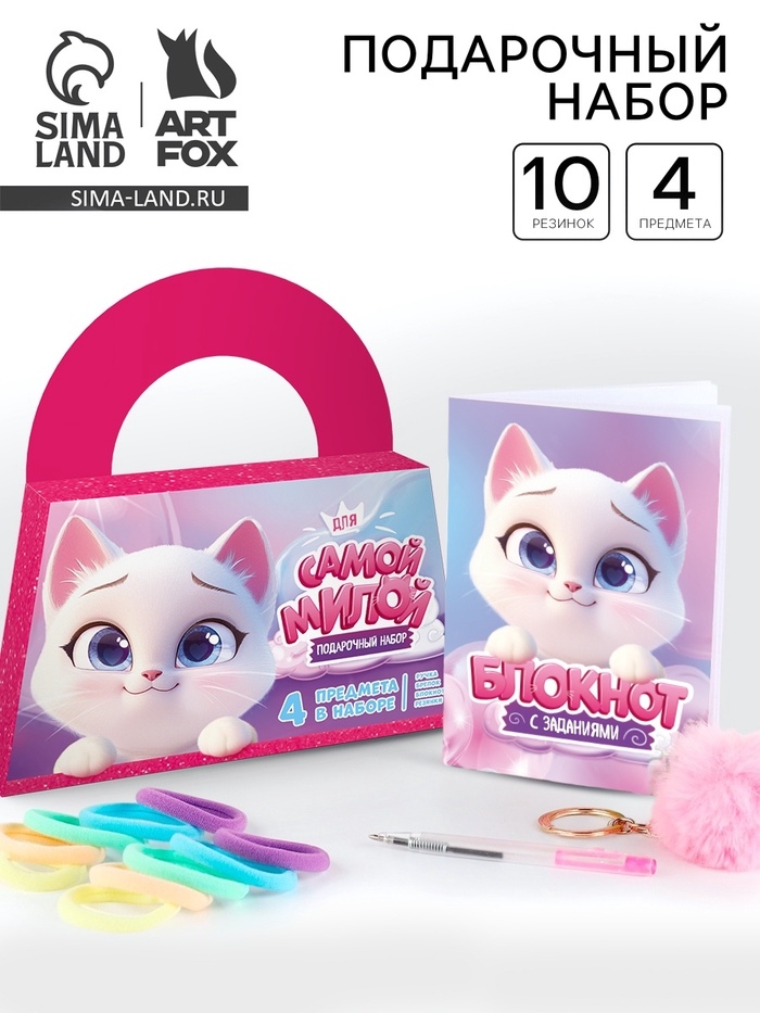 Подарочный набор в сумке: блокнот, резиночки, брелок, ручка "Самой милой"