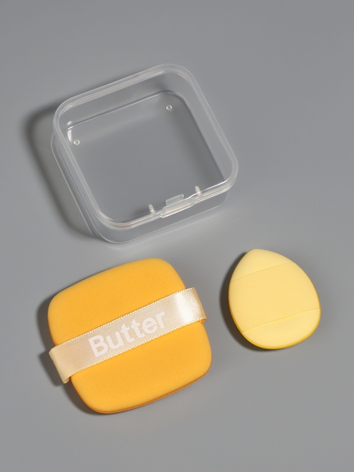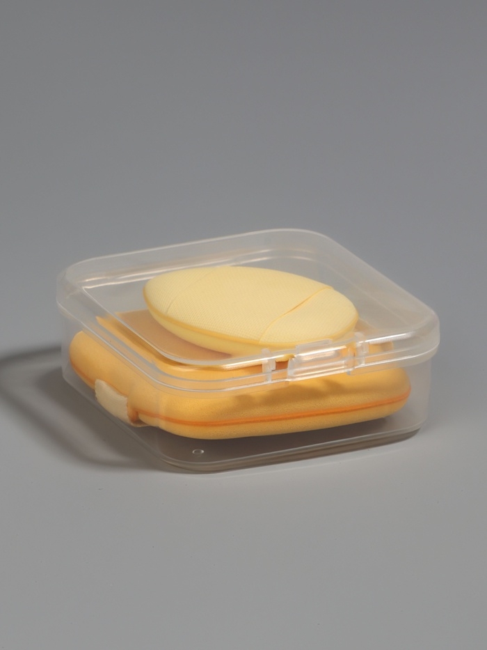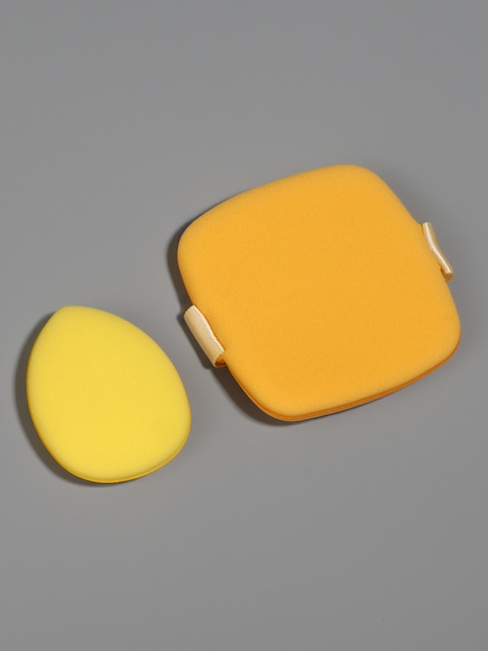 Набор спонжей д/макияжа 2 шт: капля, пуховка в пласт футляр латекс желтый пакет QF
