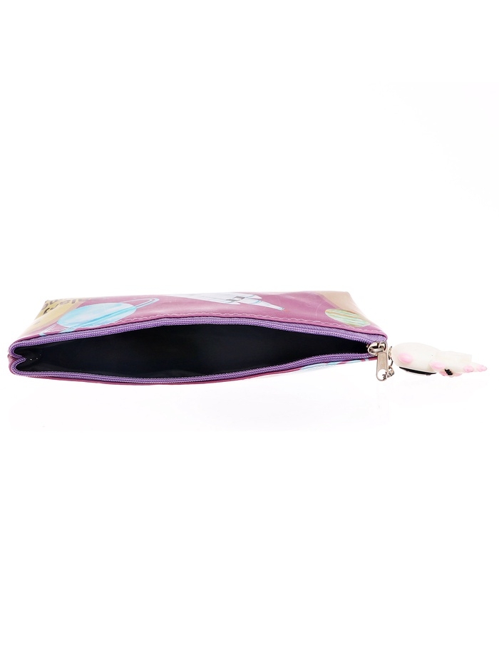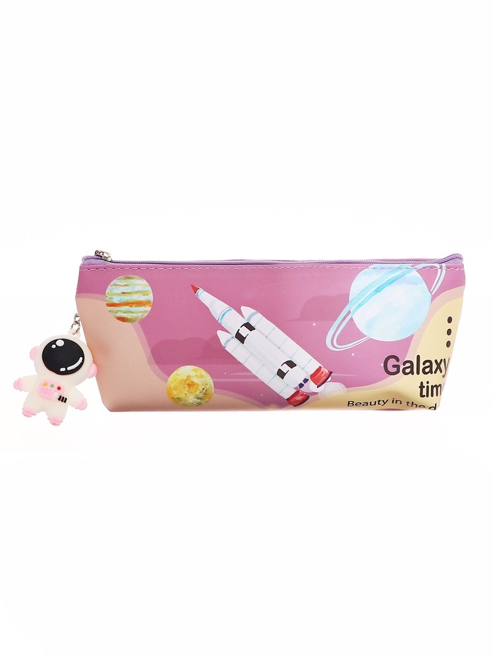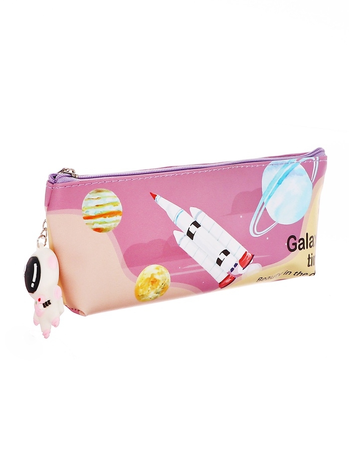 Пенал школьный на молнии Ракета Розовый, с подвеской