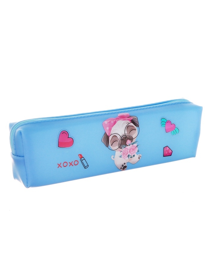 Пенал школьный на молнии Собачки Голубой