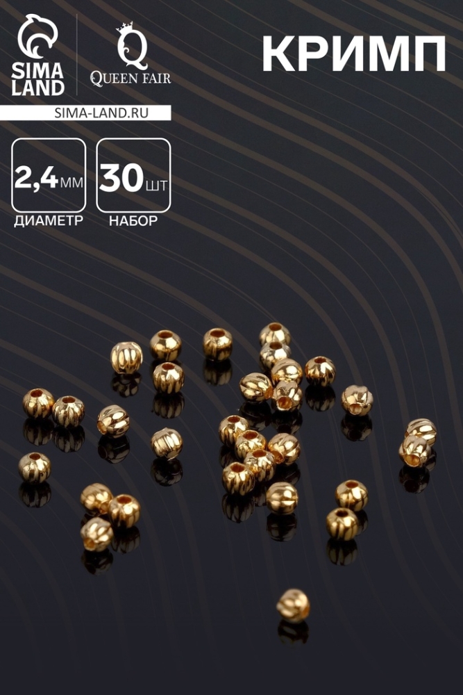 Кримп (зажимная бусина) СМ-378 (набор 30 шт.), 2,4 мм, цвет золото