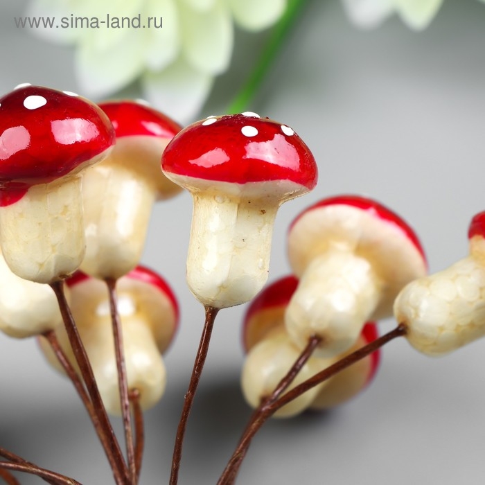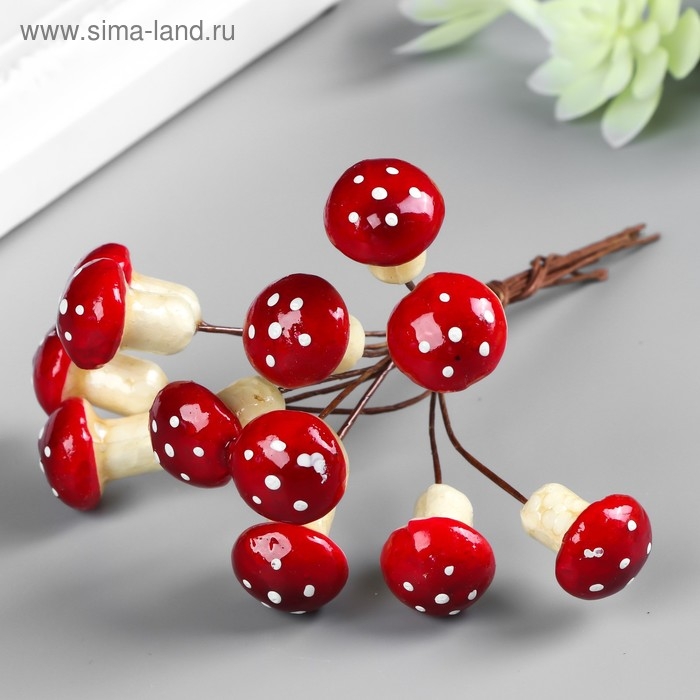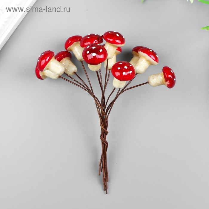 Декор для творчества "Мухоморчики" 1 набор=1 букет=12 цветов МИКС 11х1,5 см