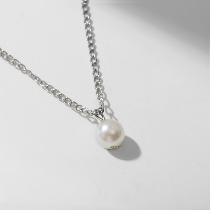 Кулон «Жемчужная бусинка» цвет белый в серебре, 42 см