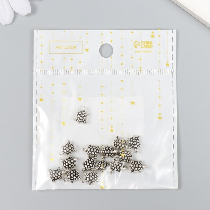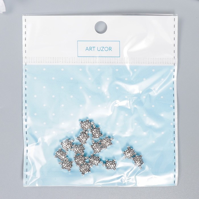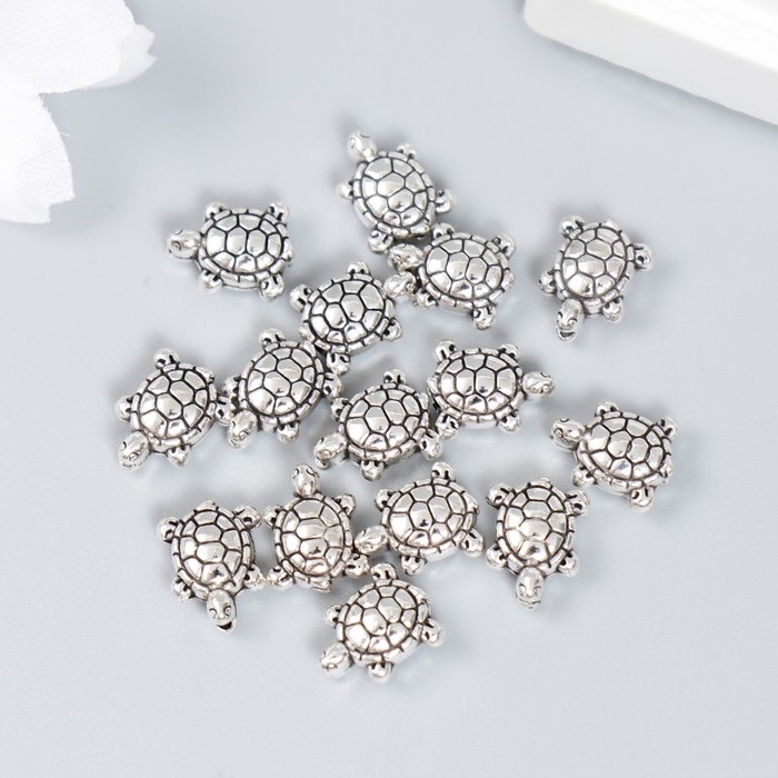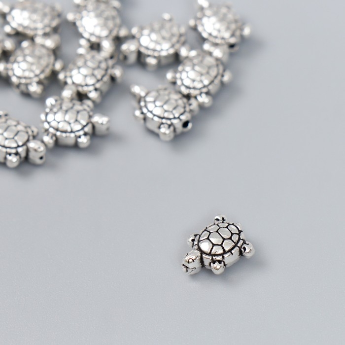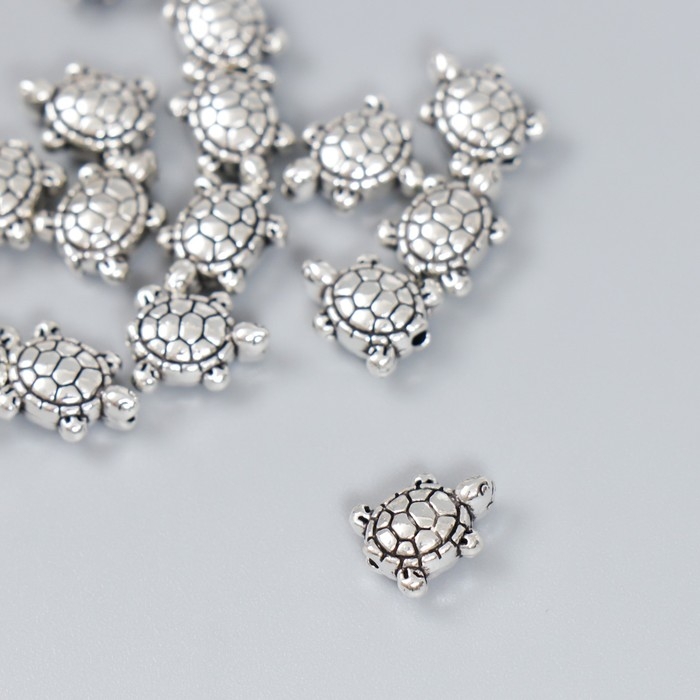 Бусины металл для творчества "Маленькая черепашка" серебро набор 20 шт