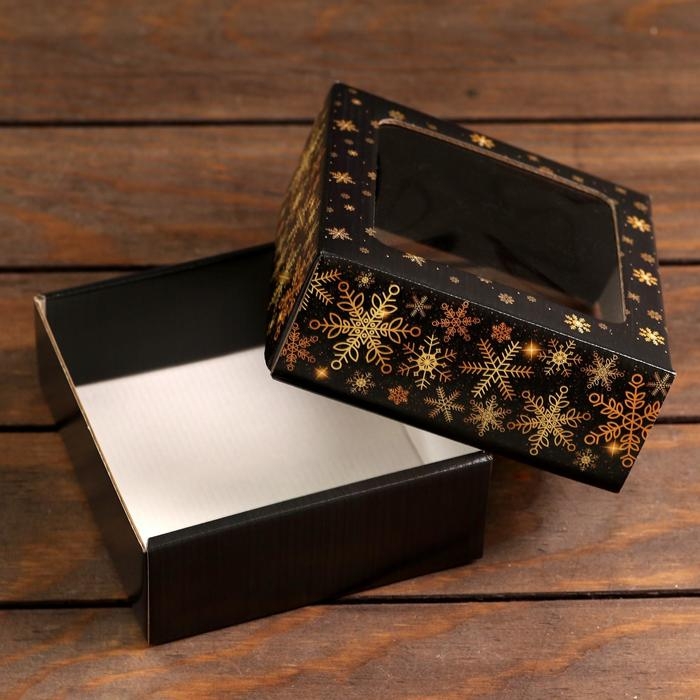 Коробка подарочная складная, упаковка, «Чёрная», с окном 21 х 15 х 7 см