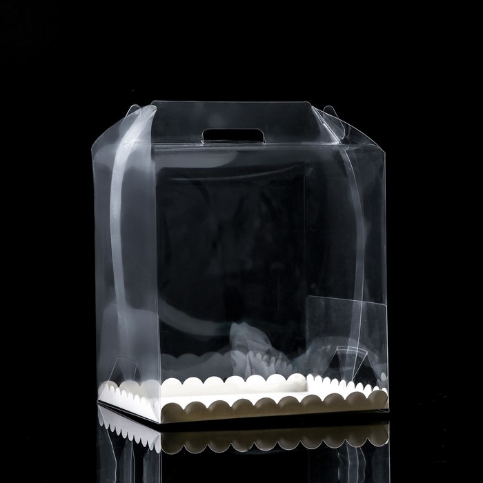 Коробка под торт, белая, с окном, 18 х 18 х 22 см