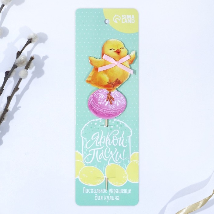 Топпер для украшения кулича «Яркой Пасхи!» на пасху, 7,7 х 4,5 см