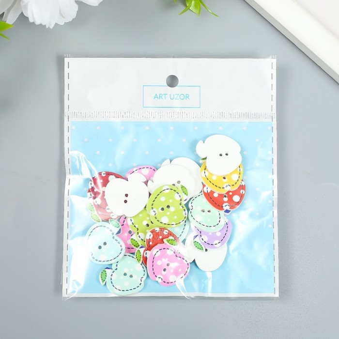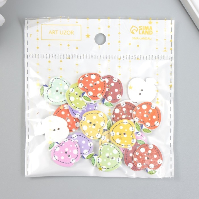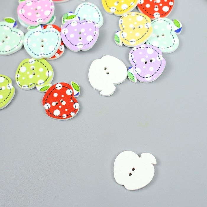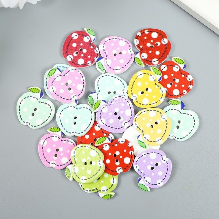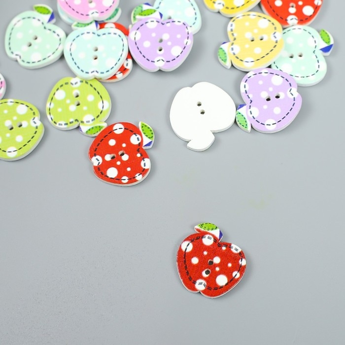 Пуговицы дерево для творчества 2 прокола "Яблоко в горох" набор 20 шт 2х2 см