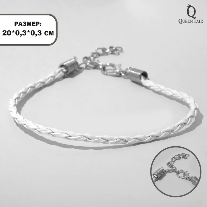 Шнур вощёный кожаный, L=20см с удлинителем, цвет белый